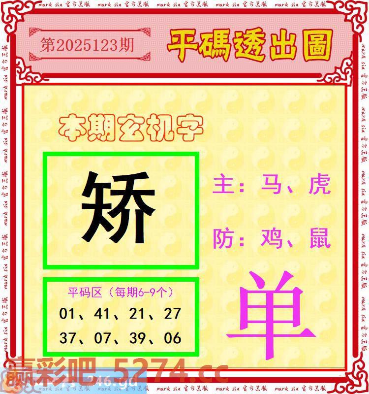 123期:玄机字+单双码+平码透出圖