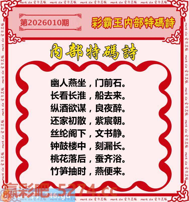 010期:彩霸王内部特码诗