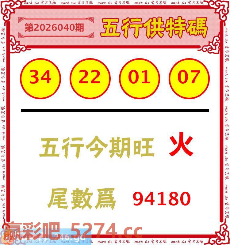 040期:五行供特码